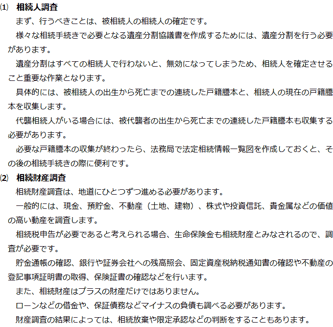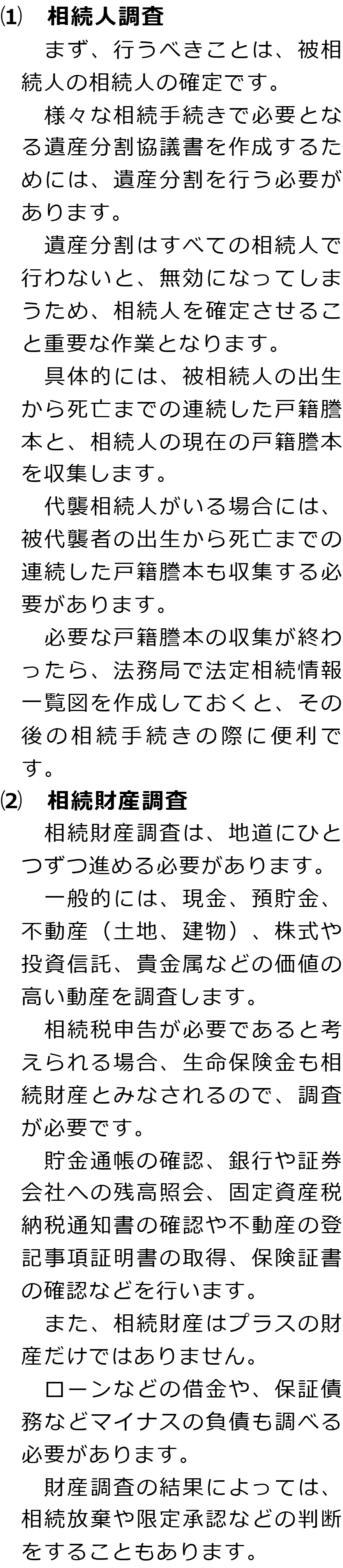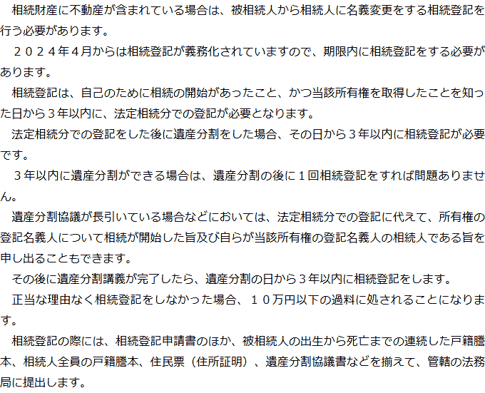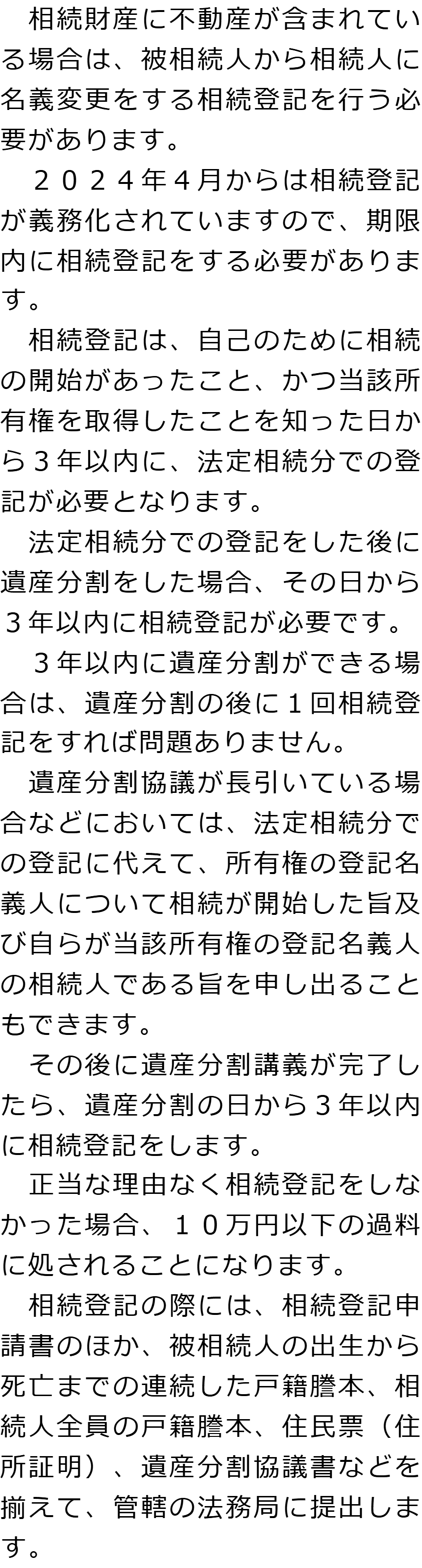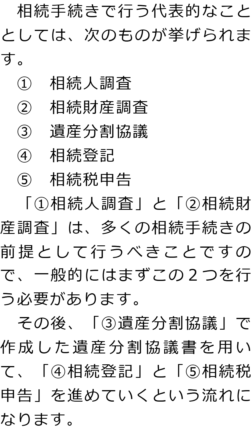 相続手続きの必要事項に関するQ&AQ相続手続きでは何をする必要がありますか?Q相続人調査と相続財産調査では何をする必要がありますか?Q遺産分割では何が必要ですか?Q相続登記はどのような場合に必要ですか?Q相続税申告はどのような場合に必要ですか? Q相続手続きでは何をする必要がありますか?AQ相続人調査と相続財産調査では何をする必要がありますか?AQ遺産分割では何が必要ですか?AQ相続登記はどのような場合に必要ですか?AQ相続税申告はどのような場合に必要ですか?A Q&A(目次)Q&Aトップ相続手続きの必要事項に関するQ&A 受付時間 平日 9時~21時、土日祝 9時~18時 夜間・土日祝の相談も対応します (要予約) 所在地 〒514-0009 三重県津市羽所町345津駅前第一ビル5F 0120-2403-39 お問合せ・アクセス・地図