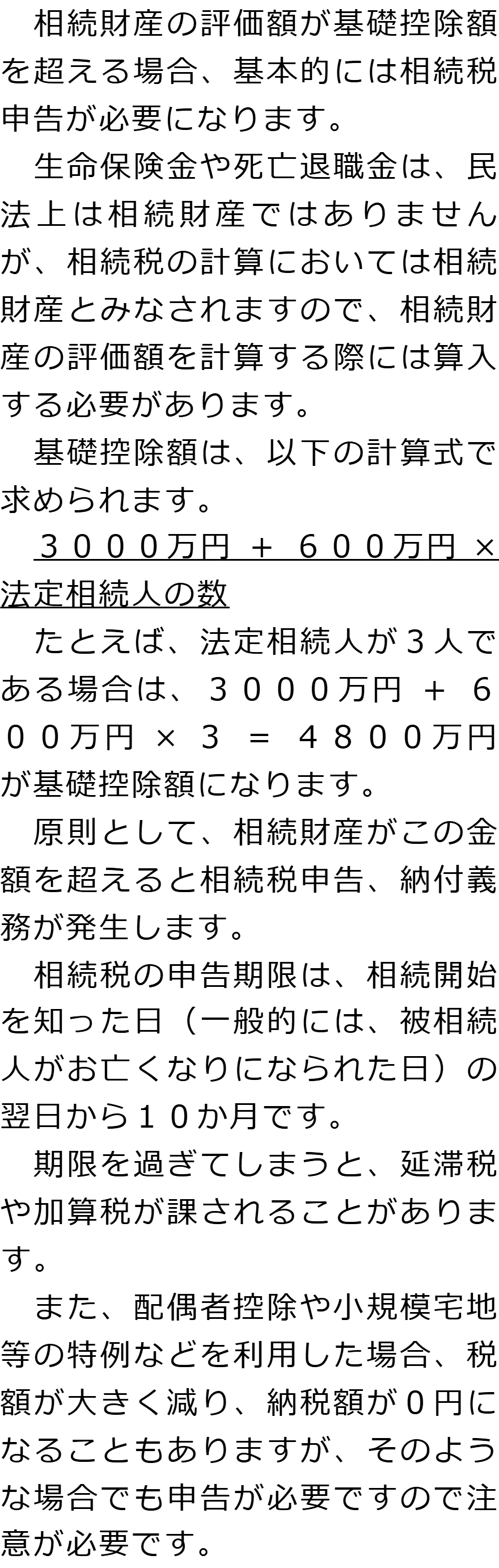 Q相続税申告はどのような場合に必要ですか?A Q&A(目次)Q&Aトップ相続手続きの必要事項に関するQ&A 受付時間 平日 9時~21時、土日祝 9時~18時 夜間・土日祝の相談も対応します (要予約) 所在地 〒514-0009 三重県津市羽所町345津駅前第一ビル5F 0120-2403-39 お問合せ・アクセス・地図