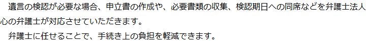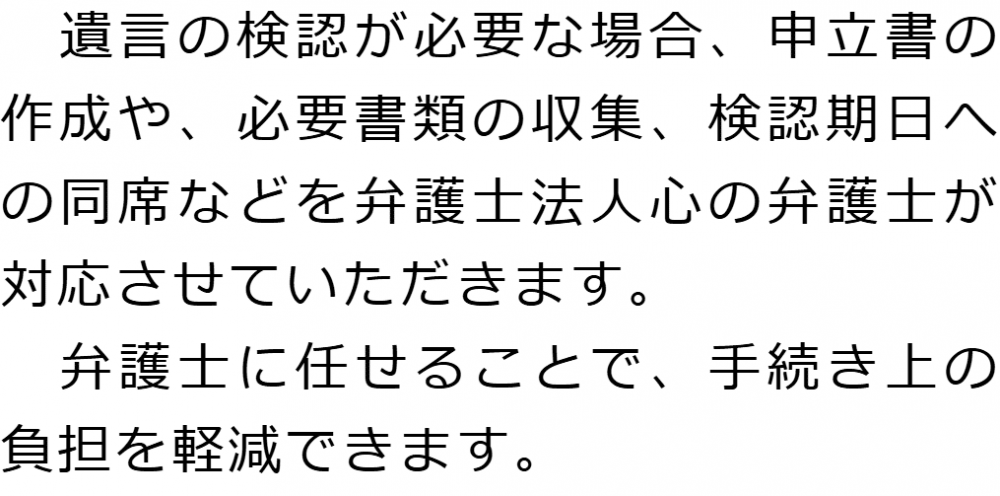 トップ業務内容遺言の検認 階層構造▼ 業務内容(目次) 遺言の検認 業務内容(目次)業務内容トップ行政書士法人心の業務内容遺言遺産整理相続人調査相続財産調査遺産分割協議書の作成預金・貯金の解約・名義変更証券口座の解約・名義変更自動車の名義変更心グループのその他の業務内容家族信託・民事信託節税対策事業承継遺言の検認相続放棄限定承認遺産分割遺留分侵害額請求相続登記相続税申告相続税調査 受付時間 平日 9時~21時、土日祝 9時~18時 夜間・土日祝の相談も対応します (要予約) 所在地 〒514-0009 三重県津市羽所町345津駅前第一ビル5F 0120-2403-39 お問合せ・アクセス・地図