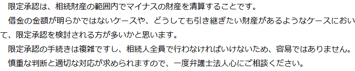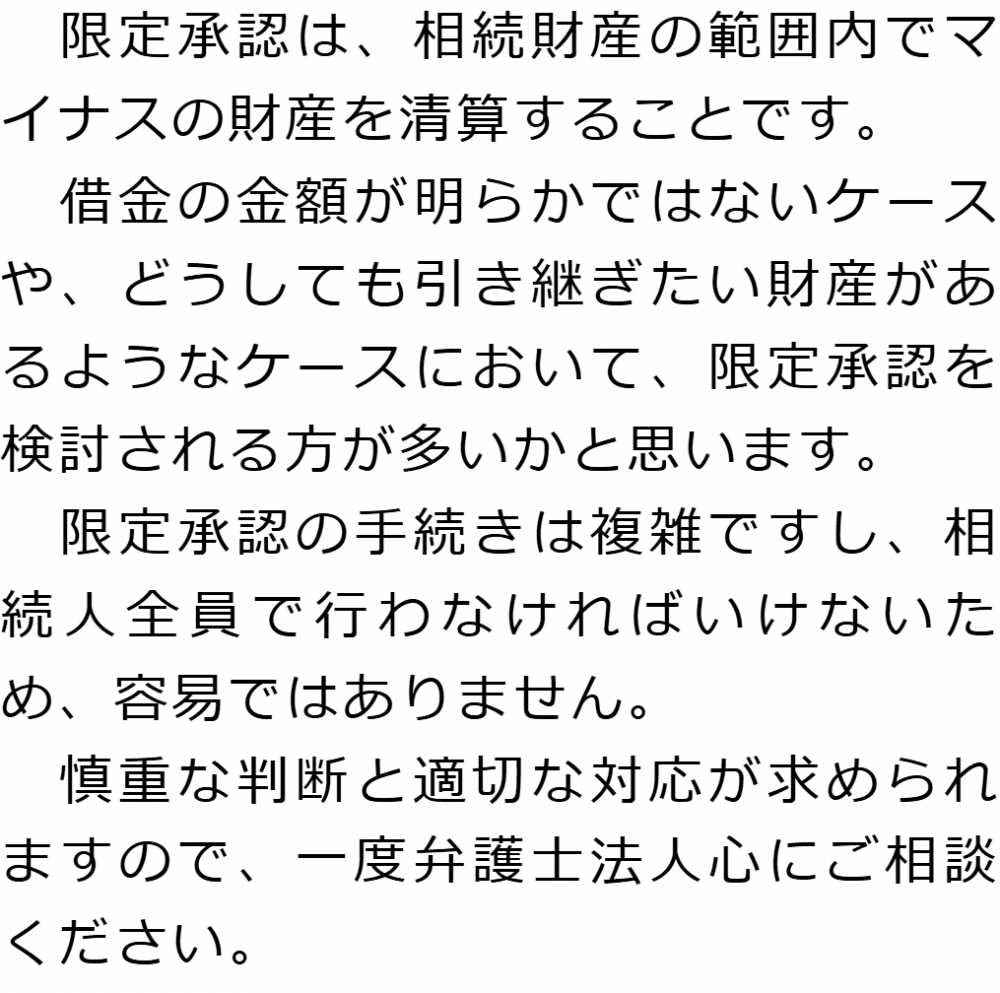 トップ業務内容限定承認 階層構造▼ 業務内容(目次) 限定承認 業務内容(目次)業務内容トップ行政書士法人心の業務内容遺言遺産整理相続人調査相続財産調査遺産分割協議書の作成預金・貯金の解約・名義変更証券口座の解約・名義変更自動車の名義変更心グループのその他の業務内容家族信託・民事信託節税対策事業承継遺言の検認相続放棄限定承認遺産分割遺留分侵害額請求相続登記相続税申告相続税調査 受付時間 平日 9時~21時、土日祝 9時~18時 夜間・土日祝の相談も対応します (要予約) 所在地 〒514-0009 三重県津市羽所町345津駅前第一ビル5F 0120-2403-39 お問合せ・アクセス・地図