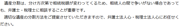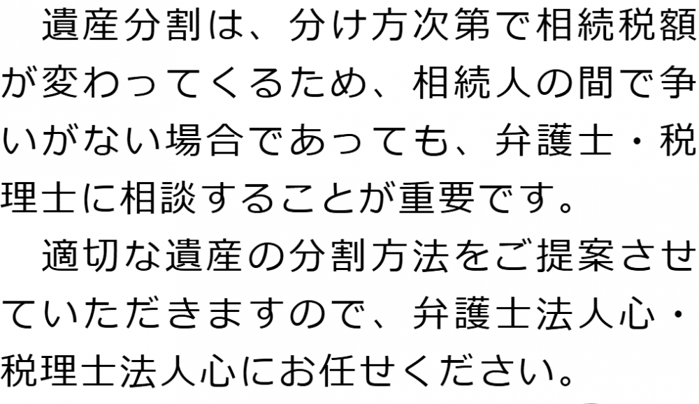 トップ業務内容遺産分割 階層構造▼ 業務内容(目次) 遺産分割 業務内容(目次)業務内容トップ行政書士法人心の業務内容遺言遺産整理相続人調査相続財産調査遺産分割協議書の作成預金・貯金の解約・名義変更証券口座の解約・名義変更自動車の名義変更心グループのその他の業務内容家族信託・民事信託節税対策事業承継遺言の検認相続放棄限定承認遺産分割遺留分侵害額請求相続登記相続税申告相続税調査 受付時間 平日 9時~21時、土日祝 9時~18時 夜間・土日祝の相談も対応します (要予約) 所在地 〒514-0009 三重県津市羽所町345津駅前第一ビル5F 0120-2403-39 お問合せ・アクセス・地図