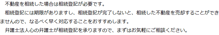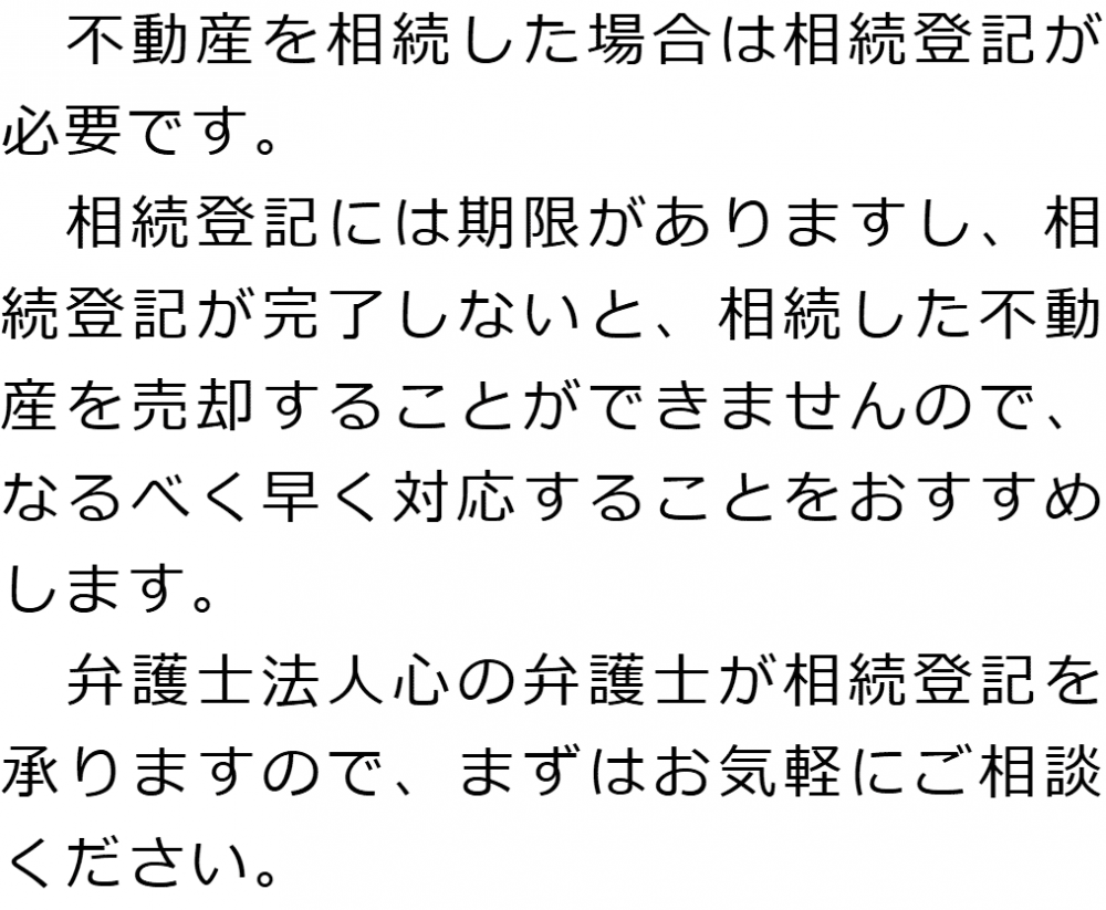 トップ業務内容相続登記 階層構造▼ 業務内容(目次) 相続登記 業務内容(目次)業務内容トップ行政書士法人心の業務内容遺言遺産整理相続人調査相続財産調査遺産分割協議書の作成預金・貯金の解約・名義変更証券口座の解約・名義変更自動車の名義変更心グループのその他の業務内容家族信託・民事信託節税対策事業承継遺言の検認相続放棄限定承認遺産分割遺留分侵害額請求相続登記相続税申告相続税調査 受付時間 平日 9時~21時、土日祝 9時~18時 夜間・土日祝の相談も対応します (要予約) 所在地 〒514-0009 三重県津市羽所町345津駅前第一ビル5F 0120-2403-39 お問合せ・アクセス・地図